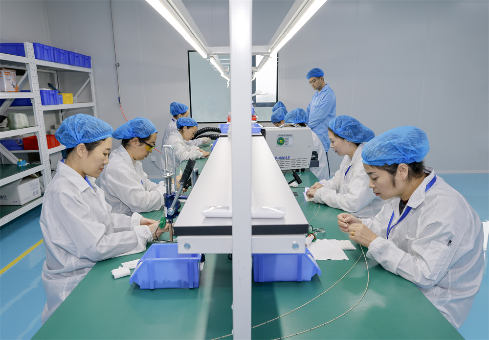 • 山西丹暉醫藥產業有限公司員工在組裝醫療器械